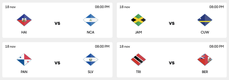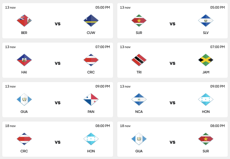 - El 13 y 14 de octubre se jugaron los últimos partidos esperando las nuevas fechas desde el 13 de noviembre, destacando goleadas como Honduras y Haiti (3-0), Costa Rica y Nicaragua (4-1), y Jamaica y Bermudas (4-0).