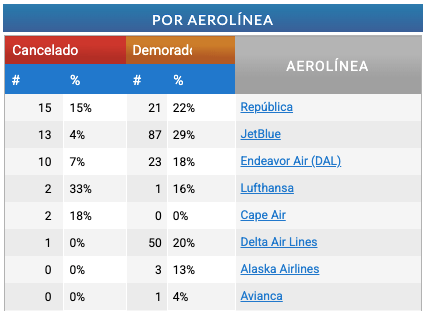 - A la hora de este reporte (11 pm hoy viernes 7 de noviembre), en la zona neoyorquina ya se reportaron: alrededor de 42 vuelos cancelados en JFK, 39 en LaGuardia y 49 en Newark, según medios locales que analizan datos de plataformas de seguimiento.