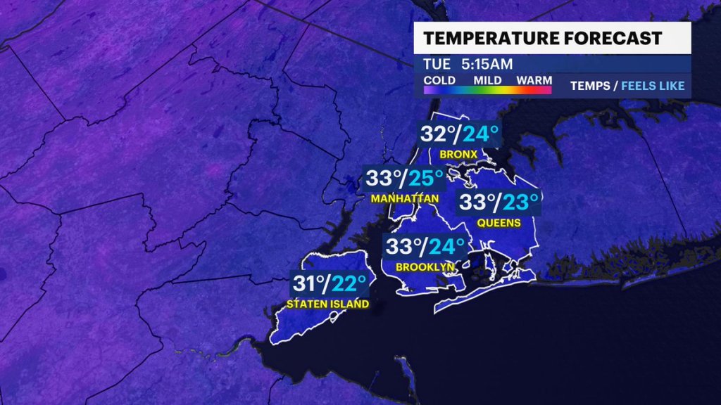 Se espera sensación térmica desde 19°F (-7°C) en algunas zonas de Nueva York