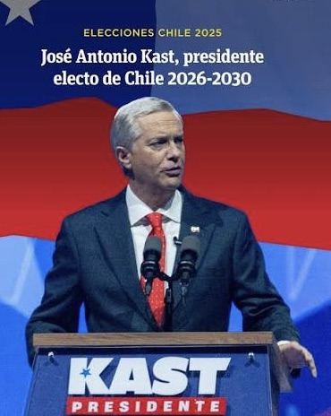 Santiago de Chile, Chile — El ultraconservador José Antonio Kast, líder del Partido Republicano, se convirtió este domingo en el nuevo presidente electo de Chile, tras obtener 58,2% de los votos válidos frente al 41,8 % de su rival de izquierda, Jeannette Jara, en la segunda vuelta de las elecciones presidenciales celebrada el 14 de diciembre de 2025. Los resultados oficiales del Servicio Electoral de Chile (Servel), con más del 99 % de las mesas escrutadas, señalan que Kast obtuvo 7 240 006 sufragios de un total de 13 392 774 votos emitidos en la segunda vuelta, con un padrón de 15 779 102 electores habilitados.
