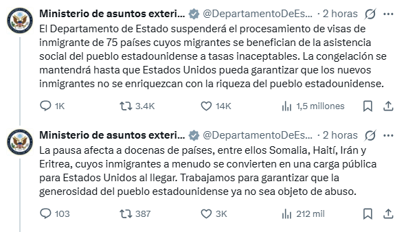 Según comunicó el Departamento de Estado, la suspensión se aplica solo a visas de inmigrante, es decir, aquellas que permiten residir permanentemente en los Estados Unidos, y no afecta visas ya emitidas ni visas temporales como las de turismo, negocios o estudios.